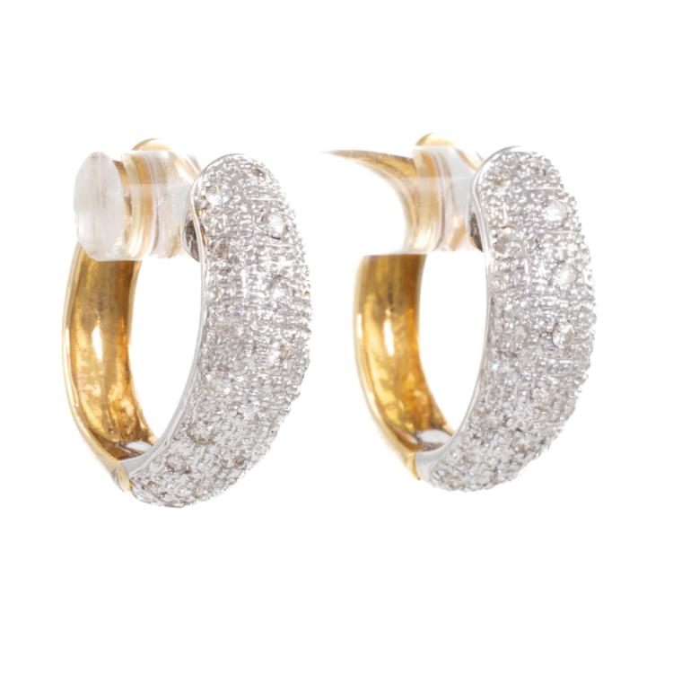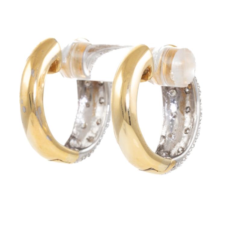 Diamond hoop earrings with round natural Diamonds totalling 0.40ct (Estimated grading: J SI). 18ct yellow & white gold. Weight: 5.4g. (As new)