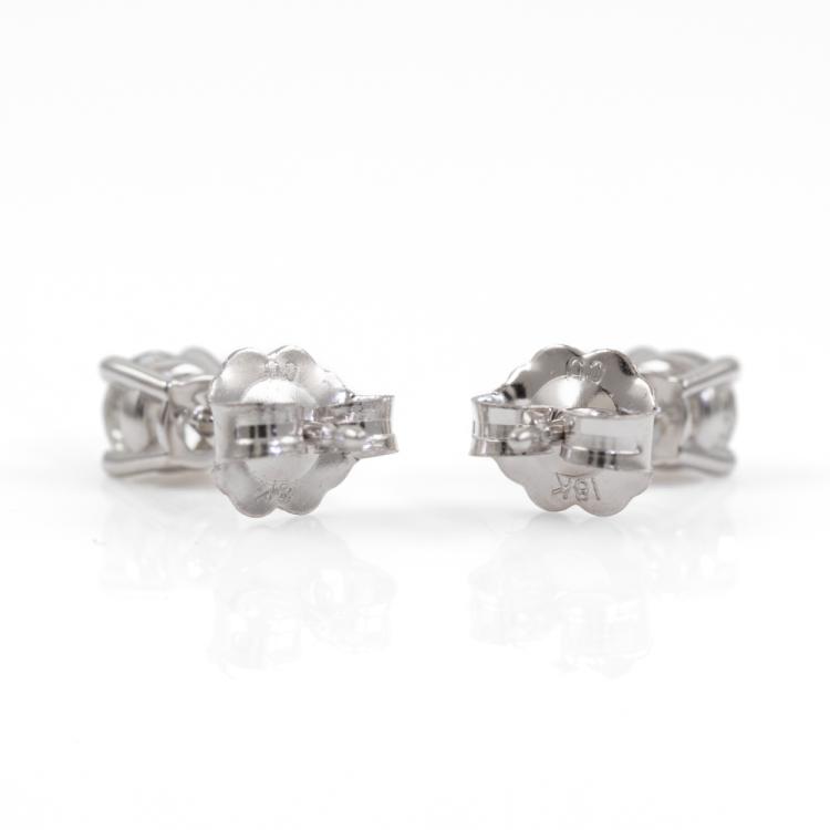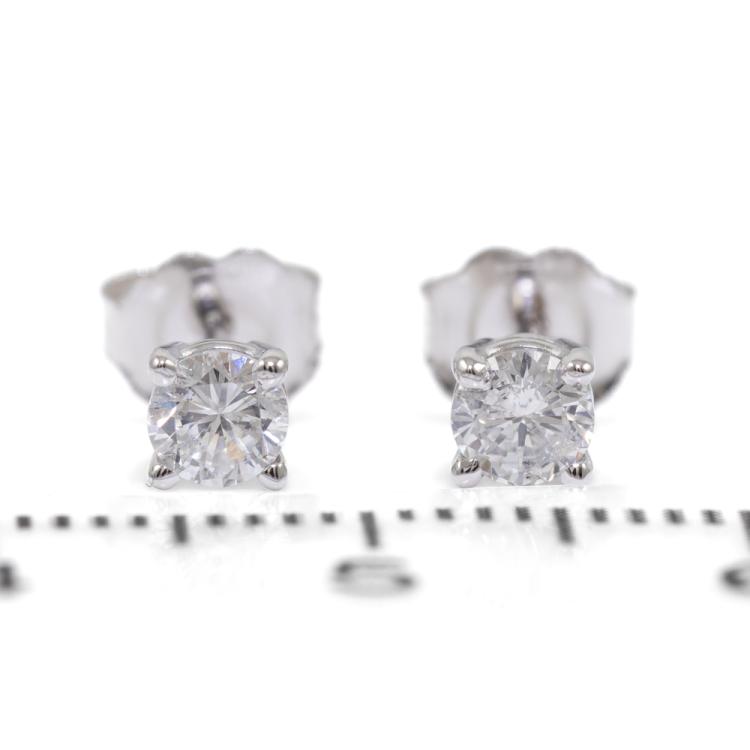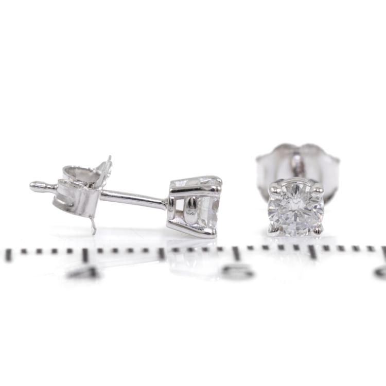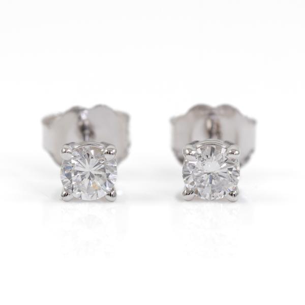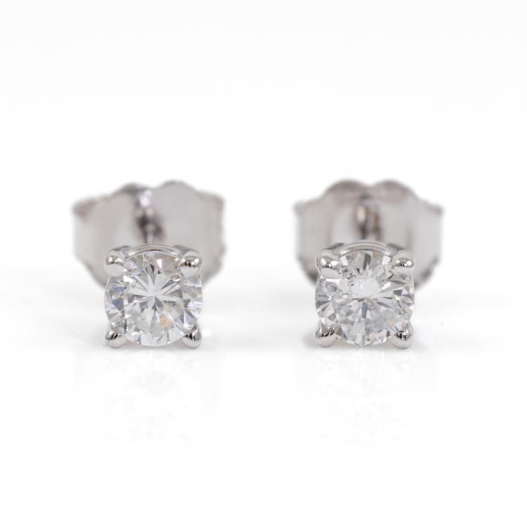 Diamond stud earrings with 2 round brilliant cut natural Diamonds totalling 0.42ct (Estimated grading: G SI2). 18ct white gold. Weight 0.9g. (New)