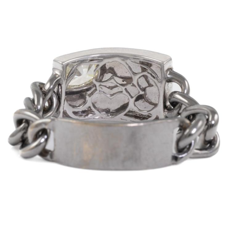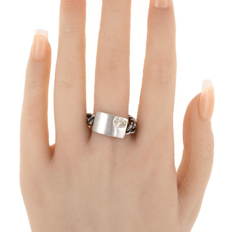 Diamond chain Ring with oval Natural diamond of 0.50ct (Estimated grading: N-O SI). 18ct white gold. Ring size U3/4. Band width 6.4mm - 6.05mm. Weight 7.9g. (Pre-owned)