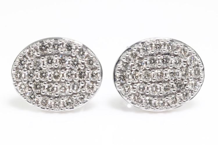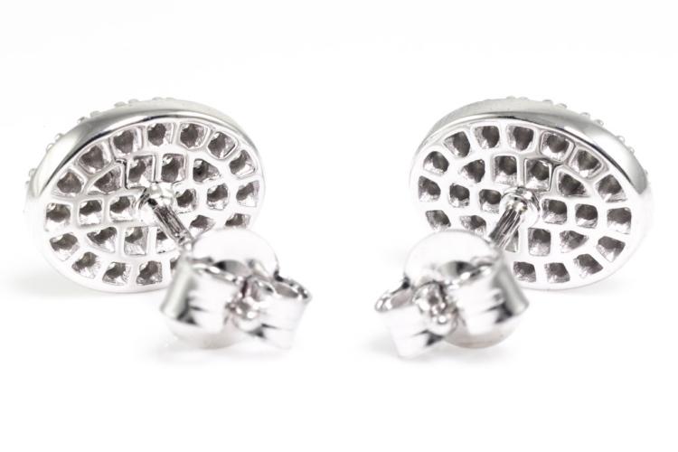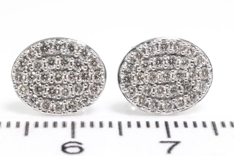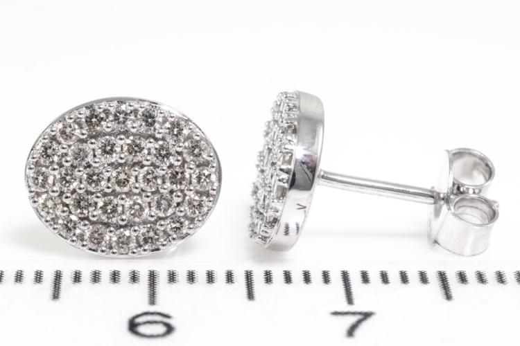 Diamond earrings with 58 round Natural diamonds totalling 0.54ct. (Estimated grading: H-I SI). 14ct white gold. Weight: 2.8g. (New)