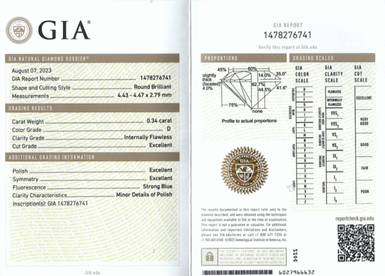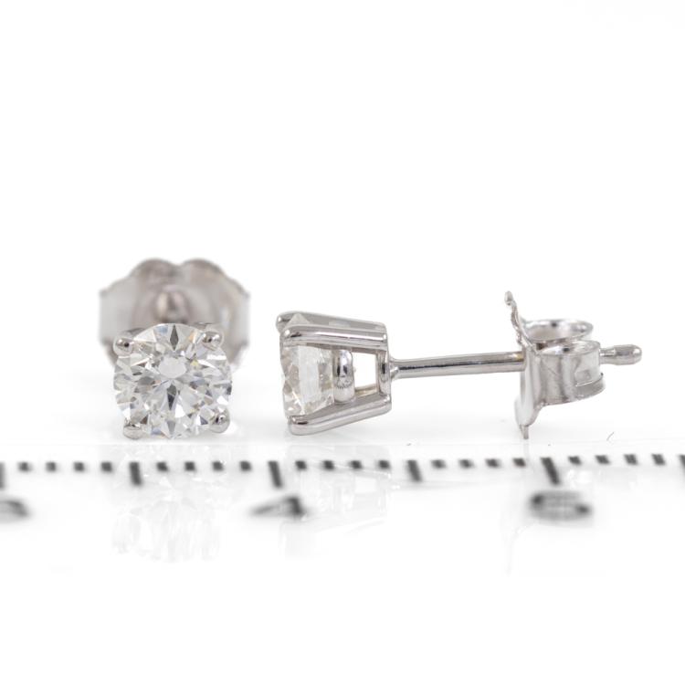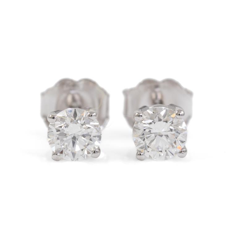 Diamond stud earrings with 2 round brilliant cut natural Diamonds totalling 0.66ct (with GIA Summary Reports graded as D Internally Flawless #1478276741, 2476682803). 18ct white gold. Weight: 0.9g. (New)