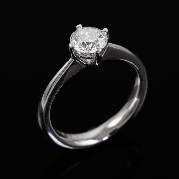 Diamond solitaire ring with round brilliant cut natural Diamond of 0.70ct (With GIA Report graded as D VVS2 #13892101). 18ct white gold. Ring size H. Band width: 3mm - 1.1mm. Weight: 3.4g. (Pre-owned)
