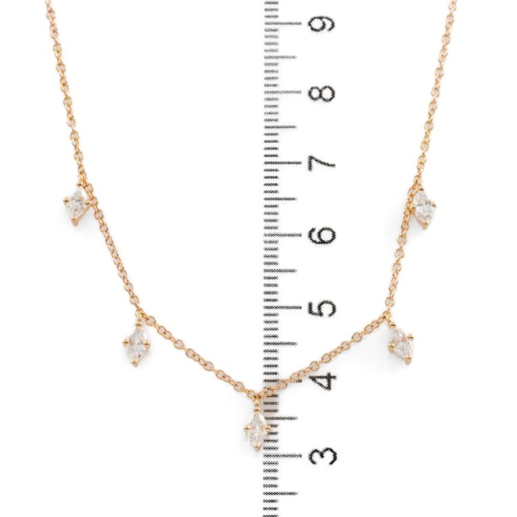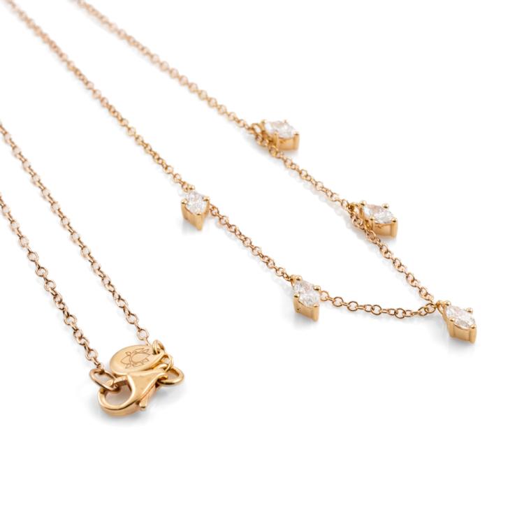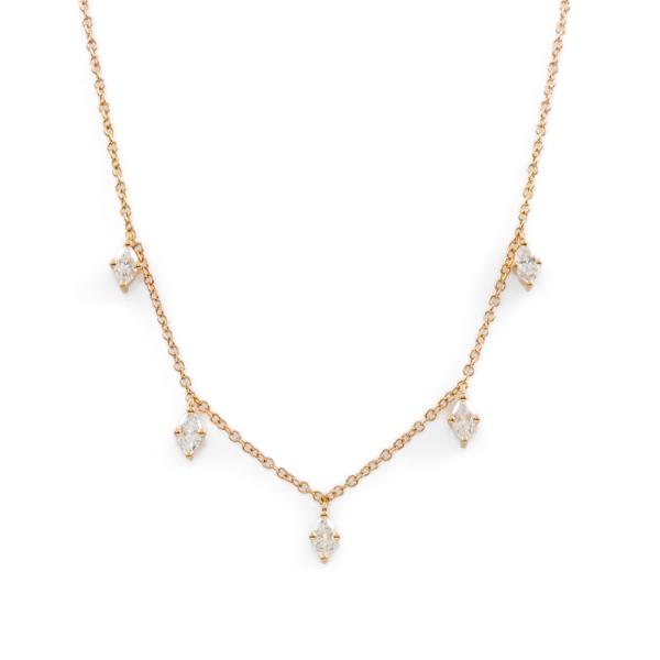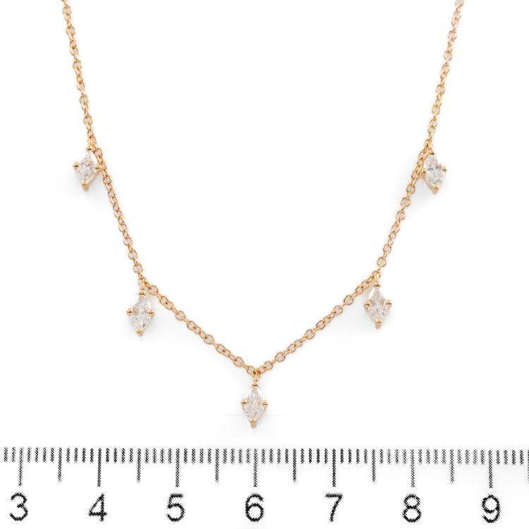 Diamond necklace with 5 marquise cut natural Diamonds totalling approximately 0.75ct (Estimated grading: H-I SI). 18ct rose gold. Length: 51cm. Weight: 3.9g. (Pre-owned)