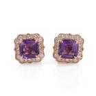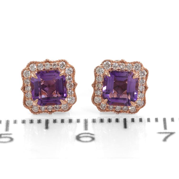 Amethyst and Diamond earrings with octagonal cut Natural Amethyst totalling 0.80cts and Natural round Diamonds totalling 0.15cts. 14ct rose gold. Weight: 1.7g. (New)