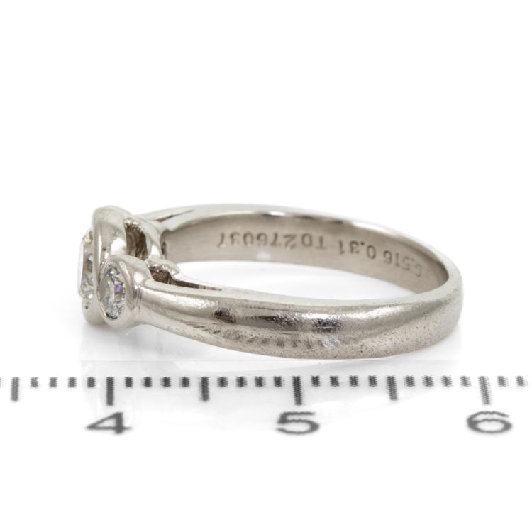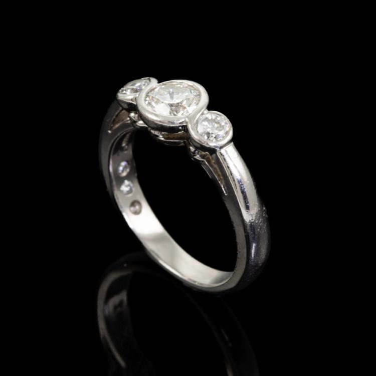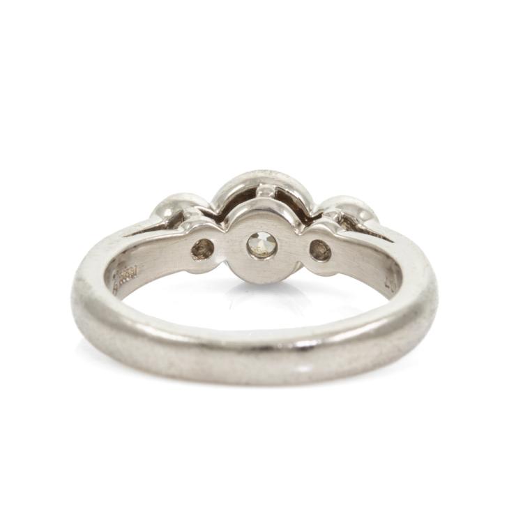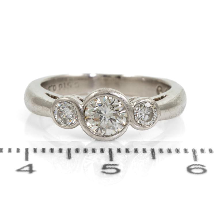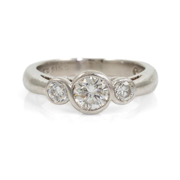 Diamond eternity ring with centre round natural Diamond of 0.51ct (Estimated grading: G-H SI) and 2 side natural diamonds totalling 0.31ct (Estimated grading: G-H SI). Platinum 900. Ring size K. Band width: 3.0mm - 2.6mm. Weight: 6.4g. (Pre-owned)