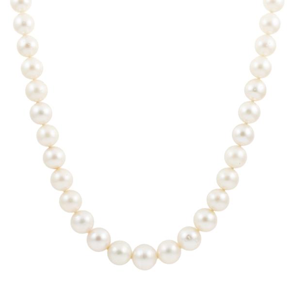 Pearl necklace with 39 graduated South Sea Pearls of 10.0mm-13.6mm. 18ct yellow gold and platinum 900 clasp. Length: 49m. Weight: 89.7g. With Certificate #418802. (Pre-owned)