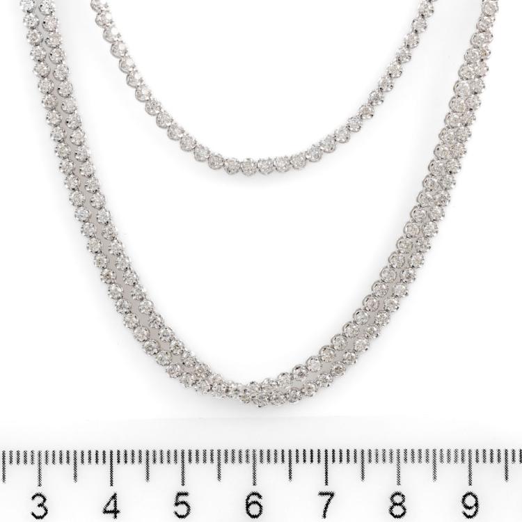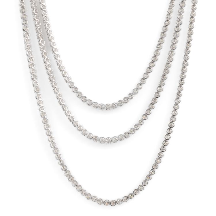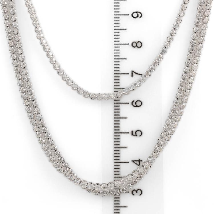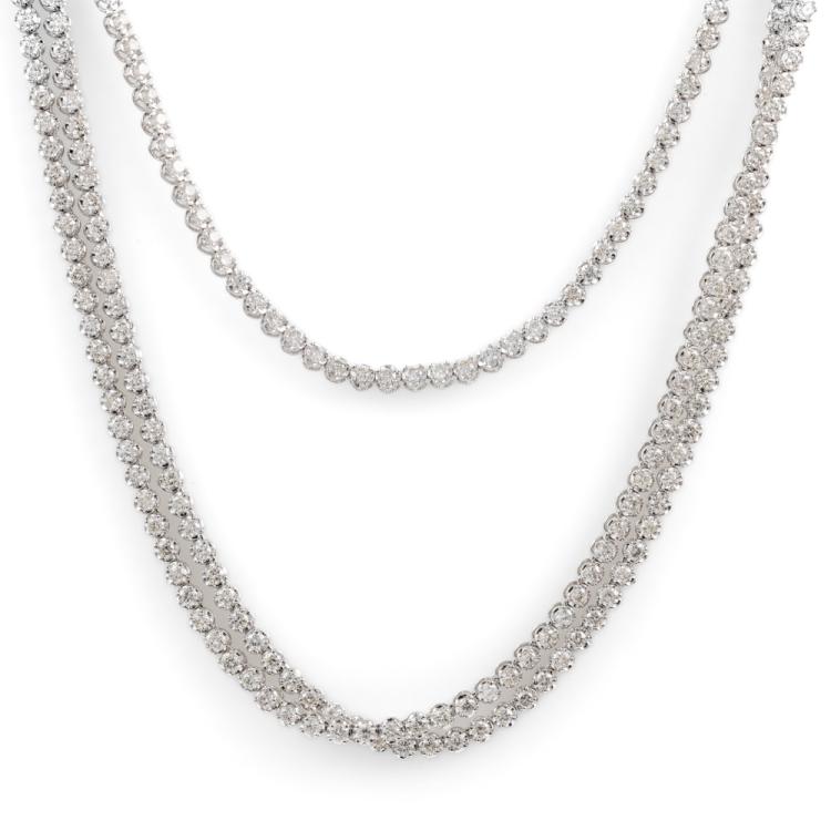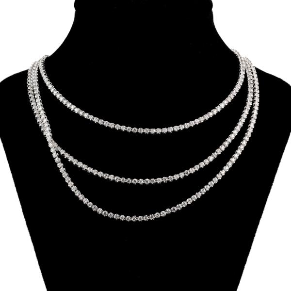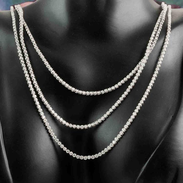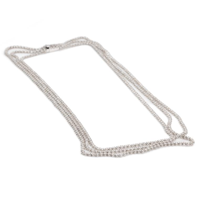 Diamond three row necklace with 567 round Natural Diamonds totalling 10.05cts (Estimated grading: H-I SI). 14ct white gold. Length: 40.5cm. Weight: 16.8g. With Valuation Certificate #418202. (New)