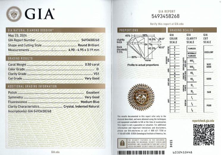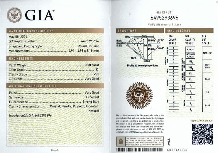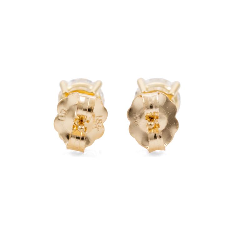 Diamond stud earrings with 2 round brilliant cut natural Diamonds totalling 1.00ct (both with GIA Summary Reports both graded as D VS1 #6495293696, 5493458268). 18ct yellow gold. Weight 1.1g. (New)