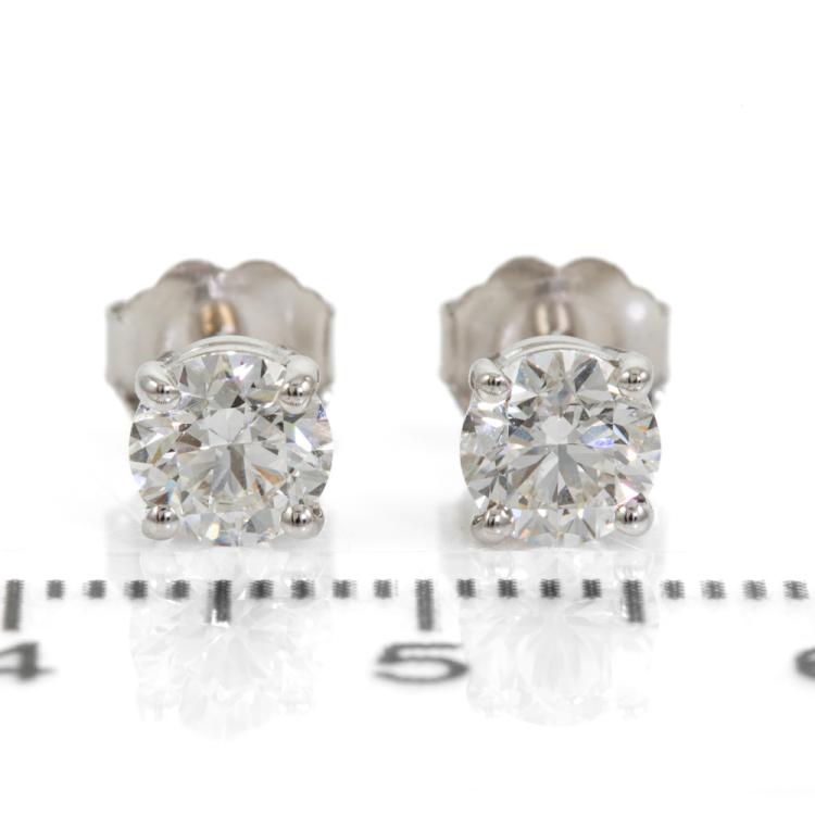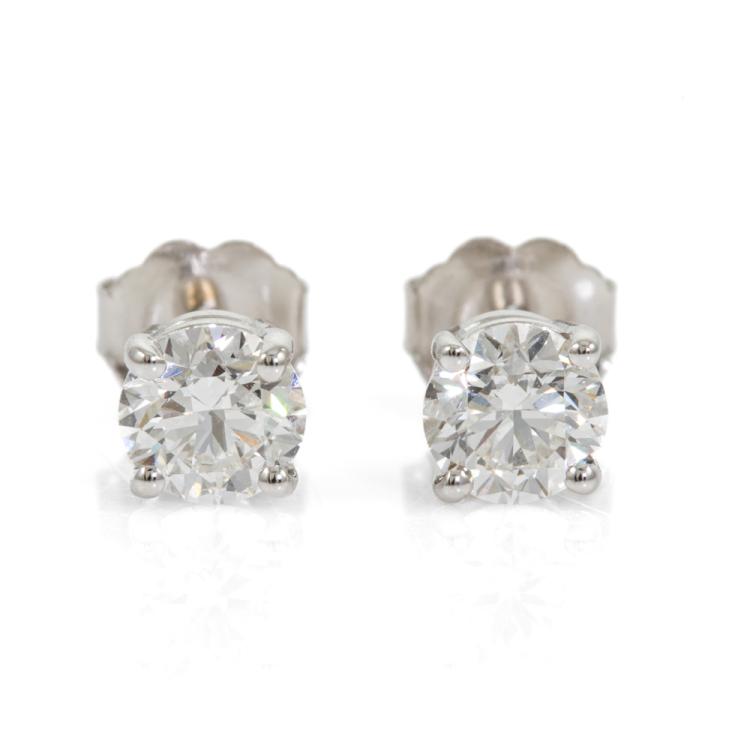Diamond stud earrings with 2 round brilliant cut Natural Diamonds totalling 1.00cts (both with GIA summary reports both graded as E VS2 #6481756206, 5483942653). 18ct white gold. Weight 1.2g. (New)