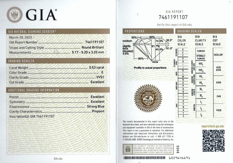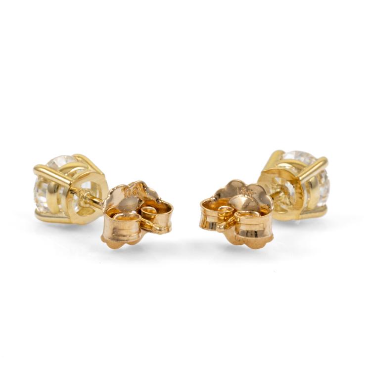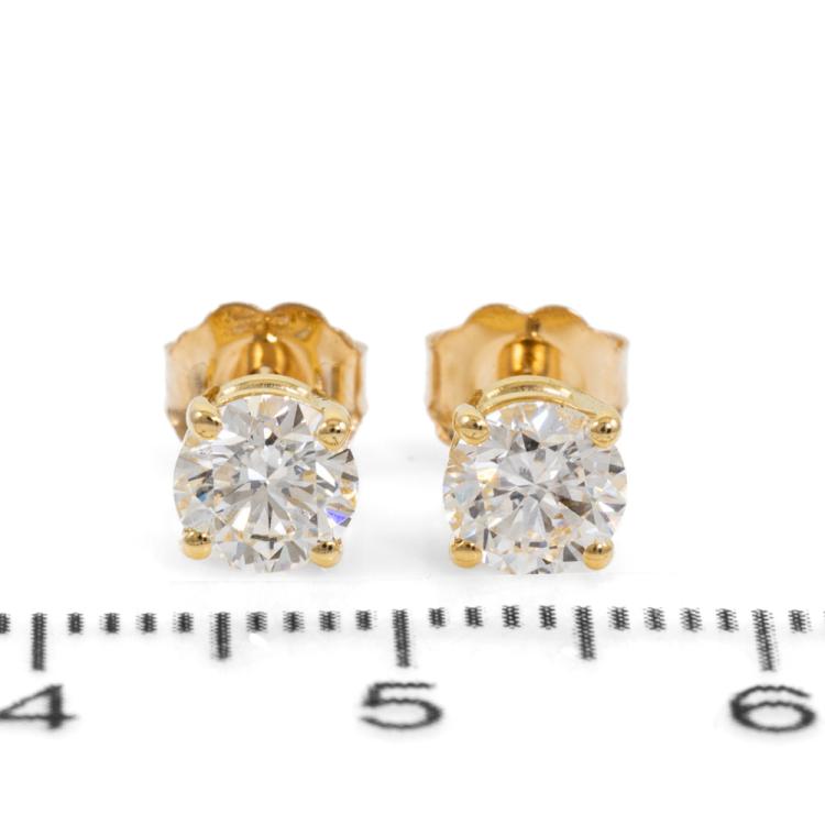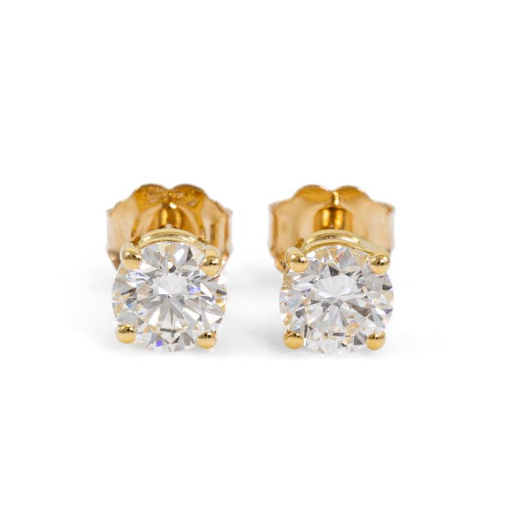 Diamond stud earrings with 2 round brilliant cut natural Diamonds totalling 1.07ct (with GIA Summary Reports graded as E VVS1 #6475346935, 7461191107). 18ct white gold. Weight: 1.2g. (New)