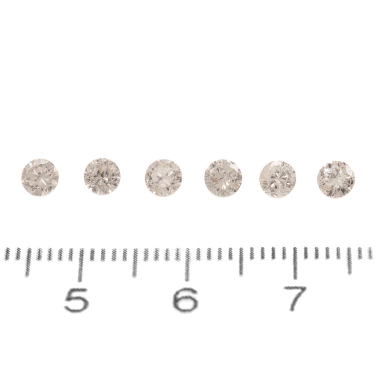 A loose parcel of 6 round brilliant cut natural Diamonds totalling 1.11ct (Estimated grading I-J P1-P2). Approximate size: 3.53mm - 3.63mm. (Pre-owned)