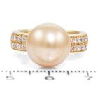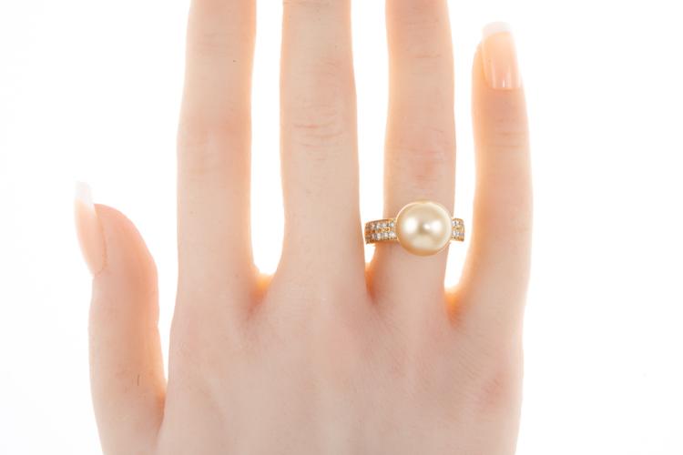 Pearl and Diamond ring with a Golden South Sea Pearl of 11.8mm and round Natural Diamonds totalling 0.40ct (Estimated grading: H SI). 18ct yellow gold. Ring size M. Weight: 11.1g. (Pre-owned)