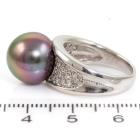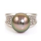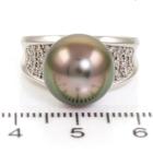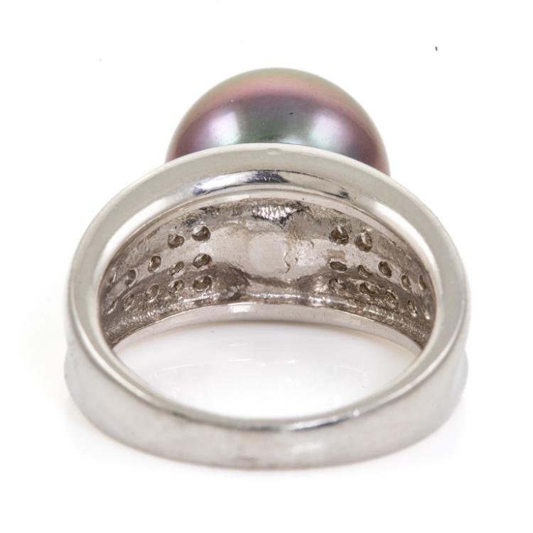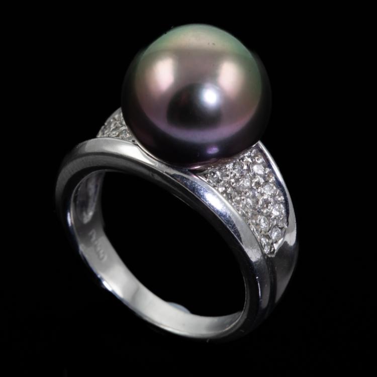Pearl and Diamond ring with Tahitian Pearl of 12.0mm and round Natural Diamonds totalling 0.32ct (Estimated grading: H P1). Platinum 900. Ring size L. Band width: 2.9mm - 7.5mm. Weight: 12.3g. (Pre-owned)