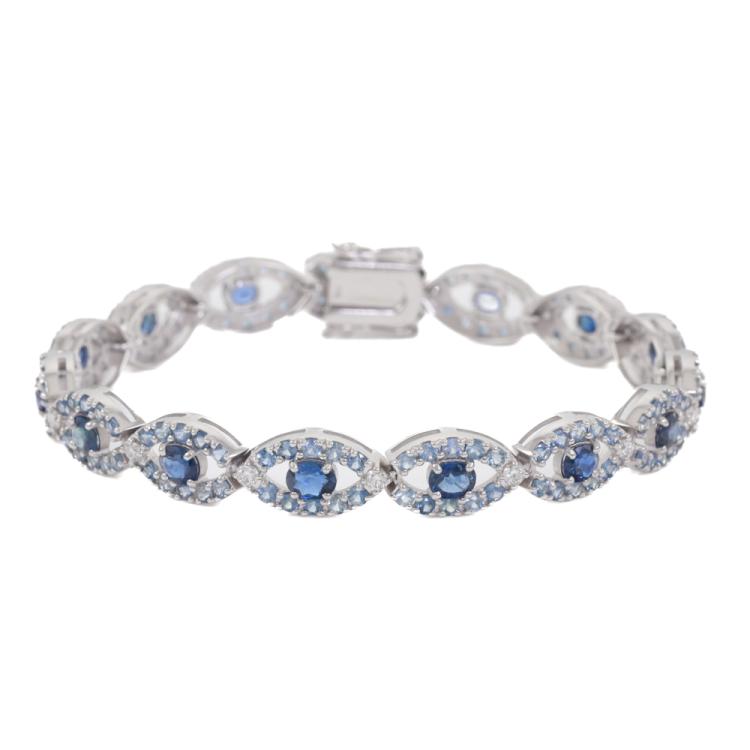 Sapphire and Diamond bracelet with oval shape dark blue Ceylon Natural Sapphires totalling 5.73ct, round light blue Ceylon Natural Sapphires totalling 6.87ct and round Natural Diamonds totalling 0.87ct (G-H VS SI). 18ct white gold. Length: 19cm. Weight: 22.2g. With GSL description certificate #AA69494/1. (As new)