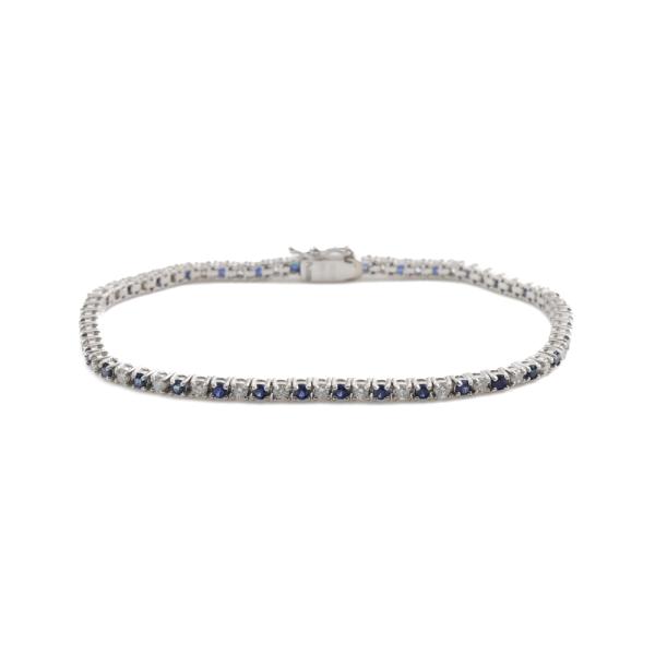 Sapphire and Diamond bracelet with round natural Blue Sapphires totalling 1.26ct and round Natural Diamonds totalling 1.00ct (Estimated Grading: G-H VS-SI). Platinum-850. Length: 17cm. Weight: 10.0g. (Pre-owned)