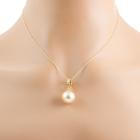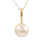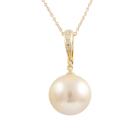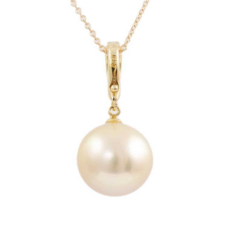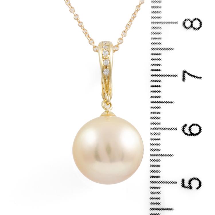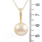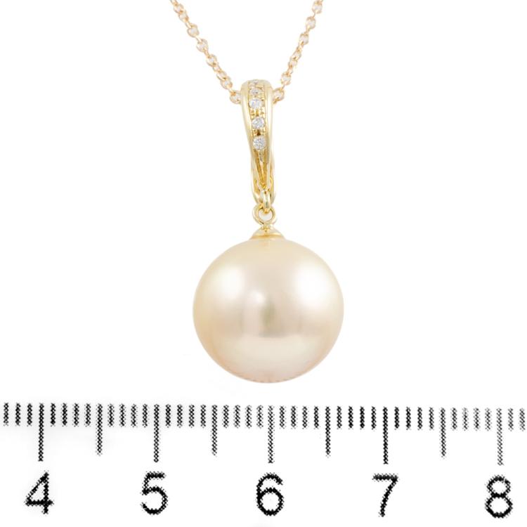 Pearl enhancer pendant with a button shape light golden South Sea Pearl of 13mm and round Natural Diamonds totalling 0.03cts. 18ct yellow gold with 14ct yellow gold 40.0cm chain. Weight: 5.0g. (Pre-owned)