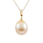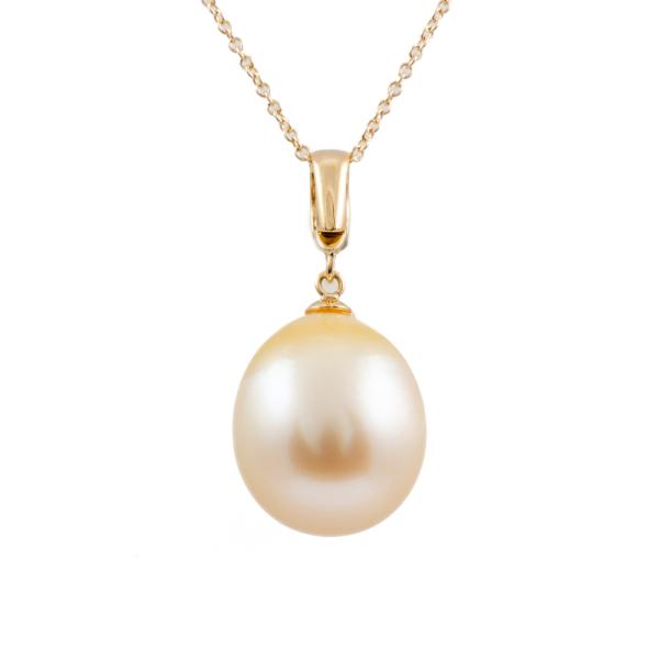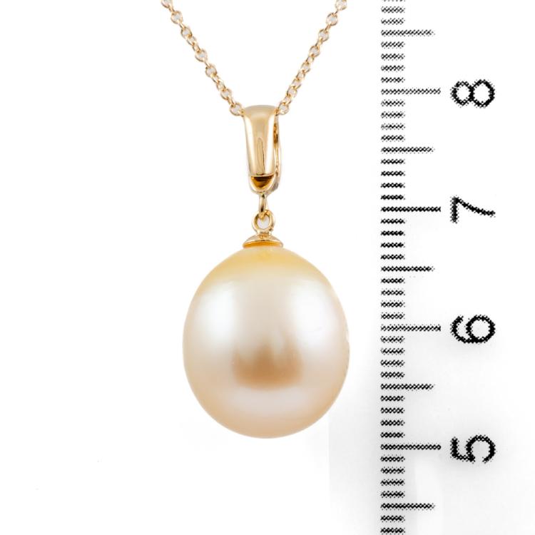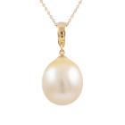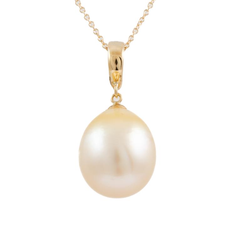 Pearl enhancer pendant with oval shape light golden South Sea Pearl of 13.9mm. 18ct yellow gold with 40cm 14ct yellow gold chain. Weight: 6.2g. (Pre-owned)