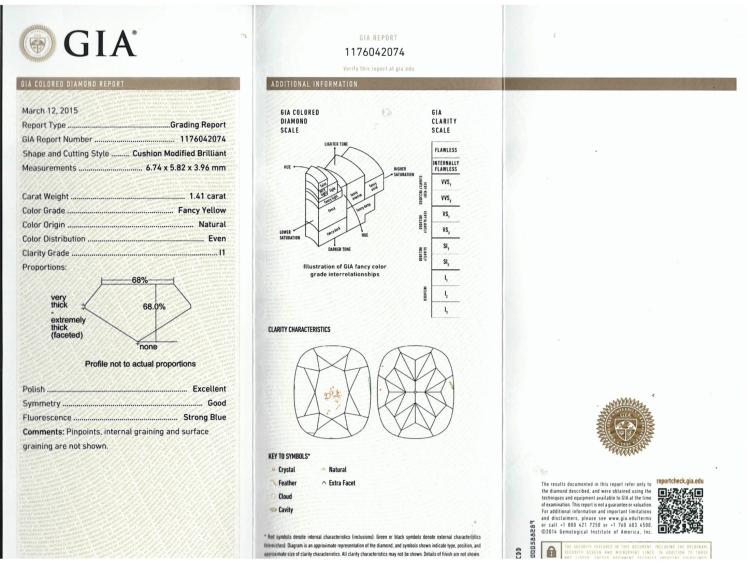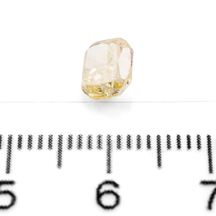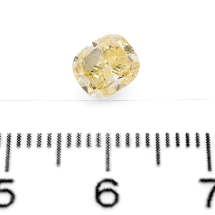 A loose cushion cut Natural Diamond of 1.41ct (with GIA report graded as Natural Fancy Yellow Even P1#1176042074). (New)