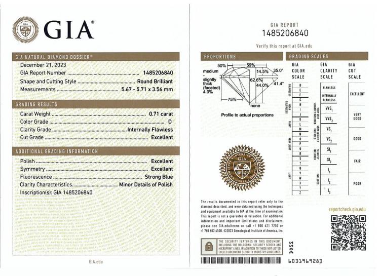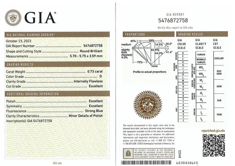 Diamond stud earrings with 2 round brilliant cut natural Diamonds totalling 1.44ct (with GIA Summary Reports graded as D IF #5476872758, 1485206840