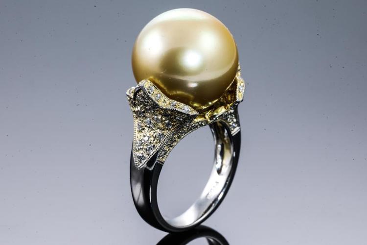 14mm Golden South Sea Pearl & Diamond Ring