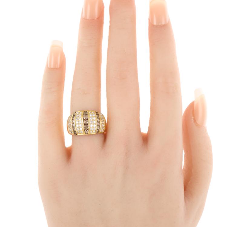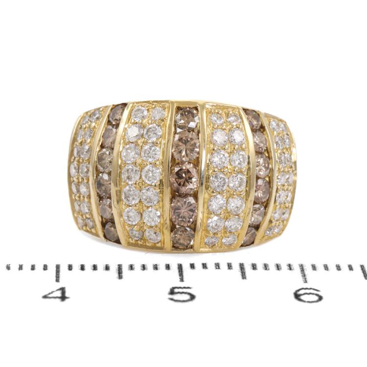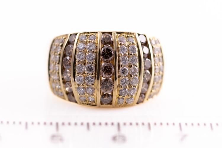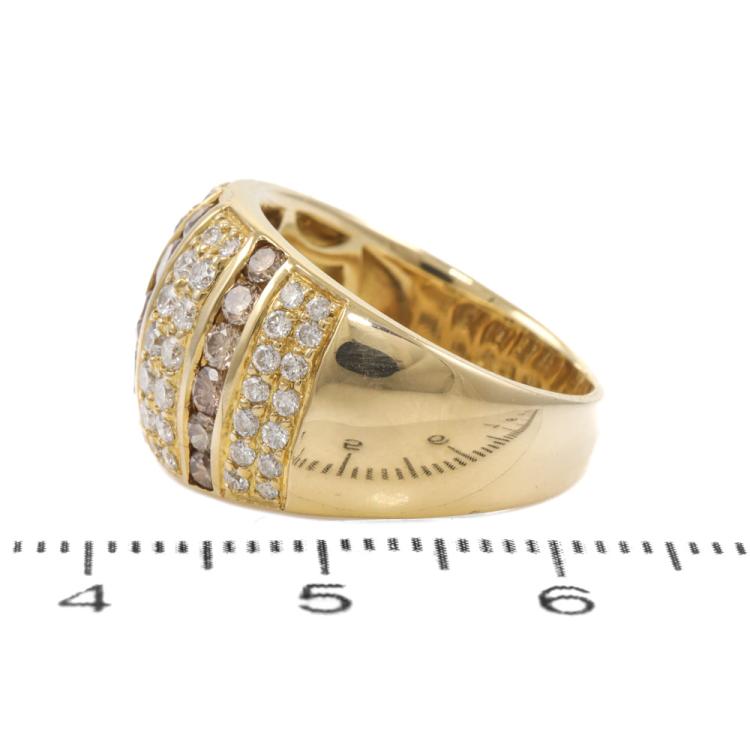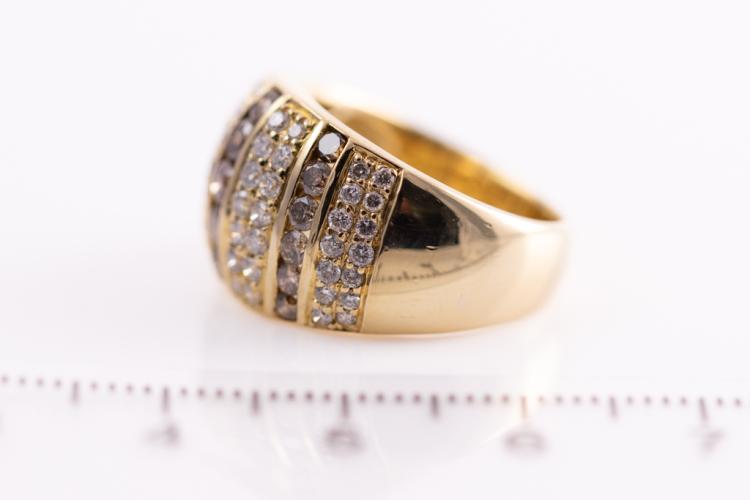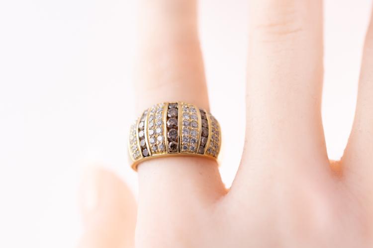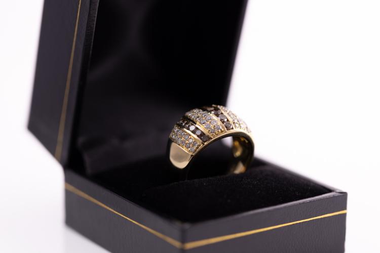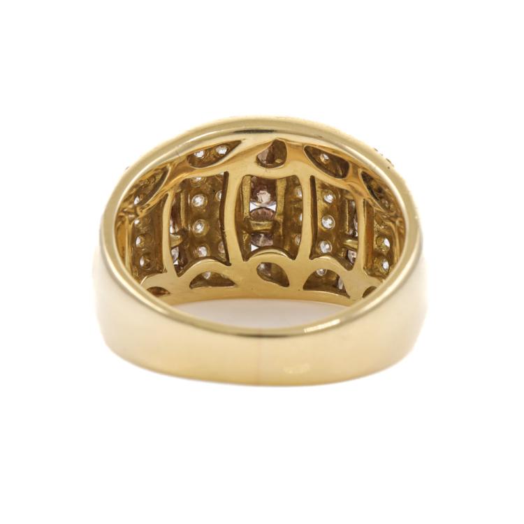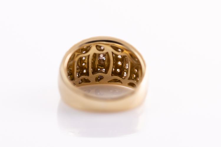 Diamond dress ring with round natural Diamonds totalling 1.50ct (Estimated grading: Champagne SI & H-I SI). 18ct yellow gold. Ring size K. Weight: 9.3g. (Pre-owned)