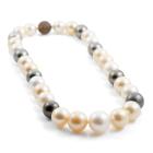 Autore Pearl necklace with 31 graduated mixed white & golden South Sea Pearl and Tahitian Pearls of 15.23mm - 11.7mm. Autore 18ct yellow gold & 12mm Smokey Quartz invisible clasp. Length: 33.5cm. Weight: 102.8g. With Autore Certificate #N-2282-037. (As New)