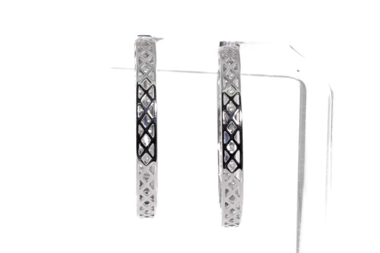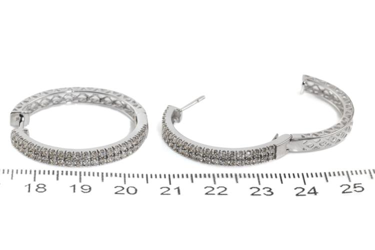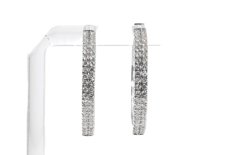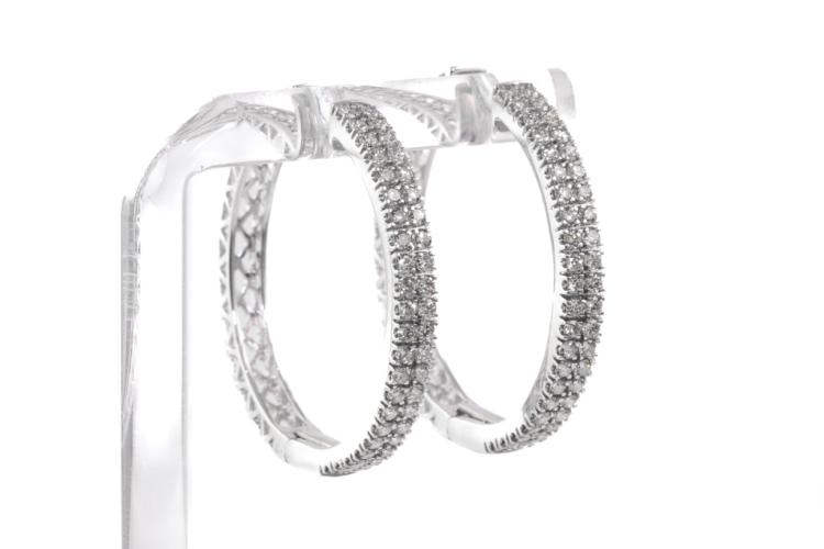 Diamond Hoop earrings with 88 round Natural Diamonds totalling 1.52ct (Estimated grading: J-K SI). 14ct white gold. Weight: 9.6g. (New)