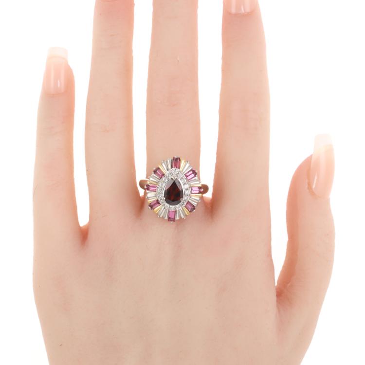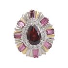 1.55ct Garnet, Tourmaline & Diamond Ring