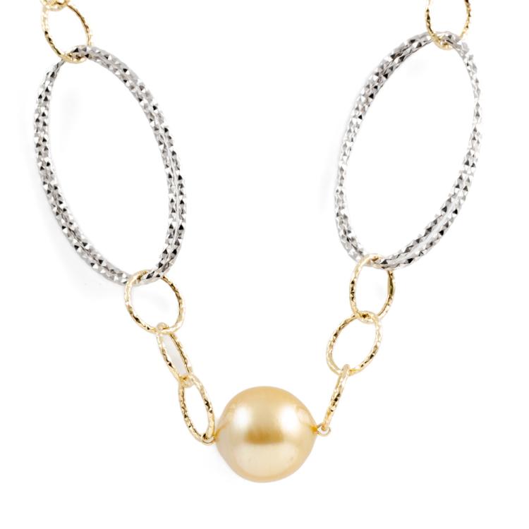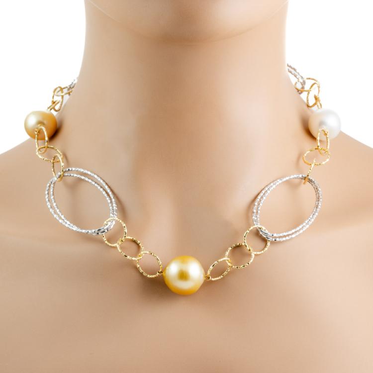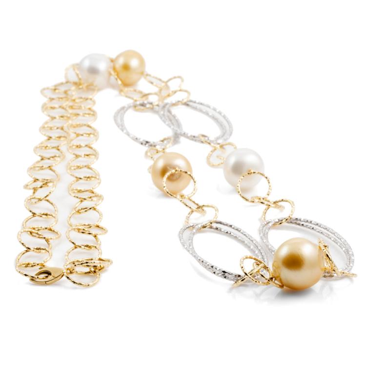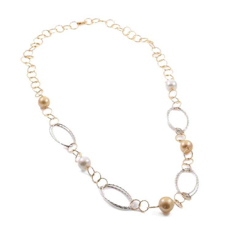 Pearl necklace with white and golden South Sea Pearls of 16.6mm - 15.0mm. 18ct yellow and white gold. Length: 94cm. Weight: 43.1g. With Certificate 418627. (Pre-owned)