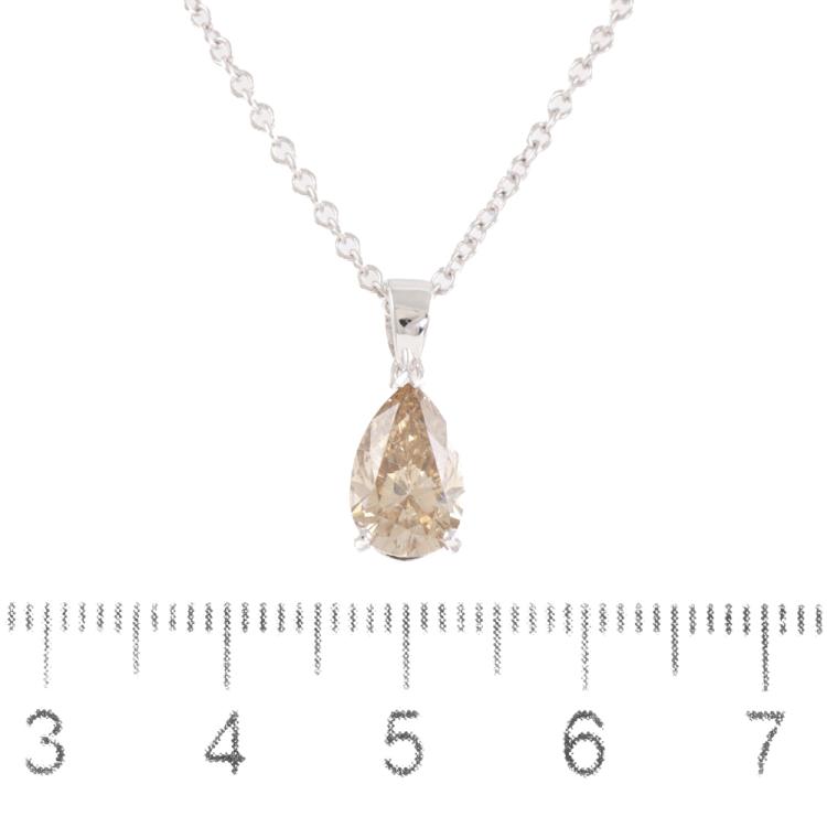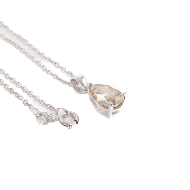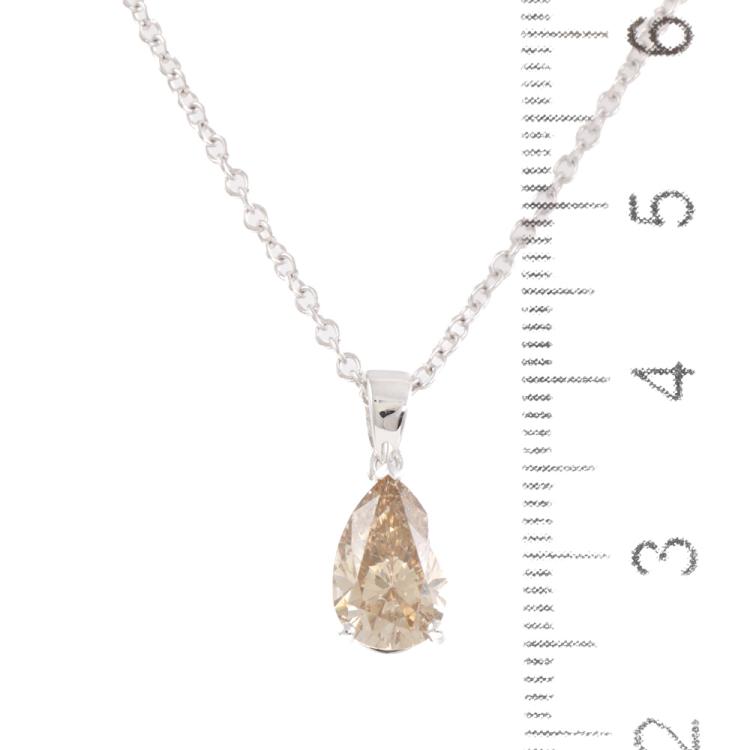 Diamond pendant with a pear shape Natural Diamond of 1.69ct (With GIA Report graded as Fancy Yellow-Brown Even VS2 # 2494896128). 18ct white gold with 18ct white gold 45cm chain. Weight 3.9g. (New)
