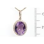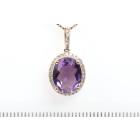 Amethyst and Diamond pendant with oval checkerboard cut natural Amethyst totalling 2.00ct and natural Diamonds totalling 0.16ct. 14ct yellow gold with 18ct yellow gold adjustable 44cm chain. Weight: 3.4g. (New)