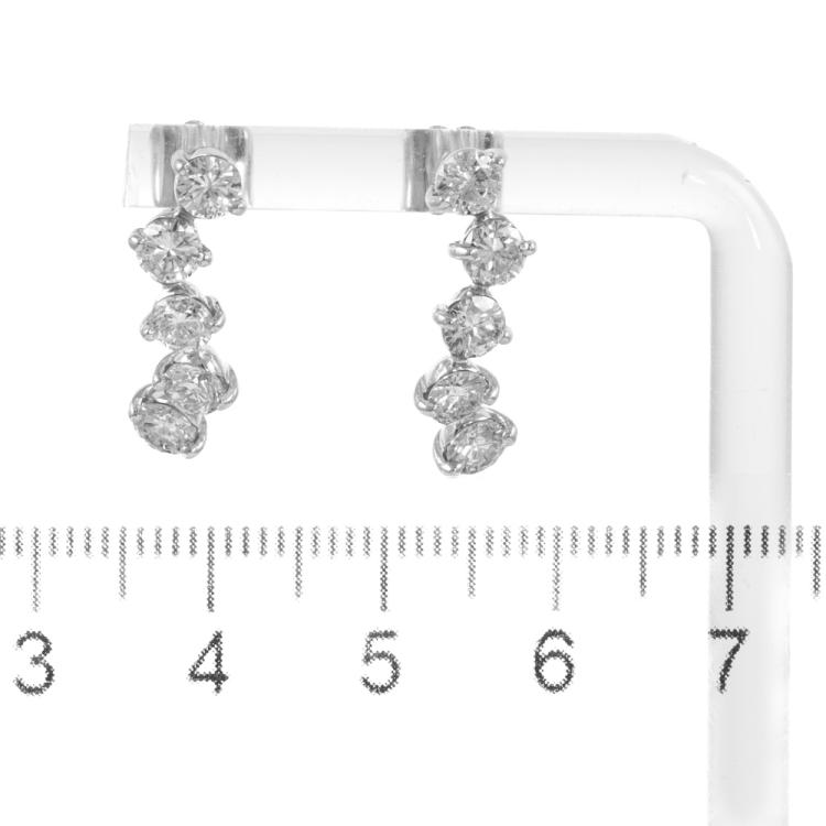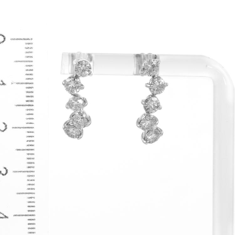 Diamond drop earrings with 10 round natural Diamonds totalling 2.00ct (Estimated grading: J-K SI). 18ct white gold. Length: 1.9cm. Weight: 3.8g. (Pre-owned)