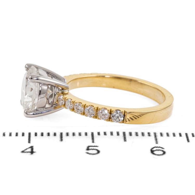Diamond solitaire ring with round brilliant cut Natural Diamond of 2.00ct (with GIA report graded as F P1 #1493308426) and surrounding round Natural diamonds totalling 0.31ct (Estimated grading: G SI) . 18ct yellow and white gold. Ring size: K. Band width: 2.55mm-2.0mm. Weight: 4.6g. (New)