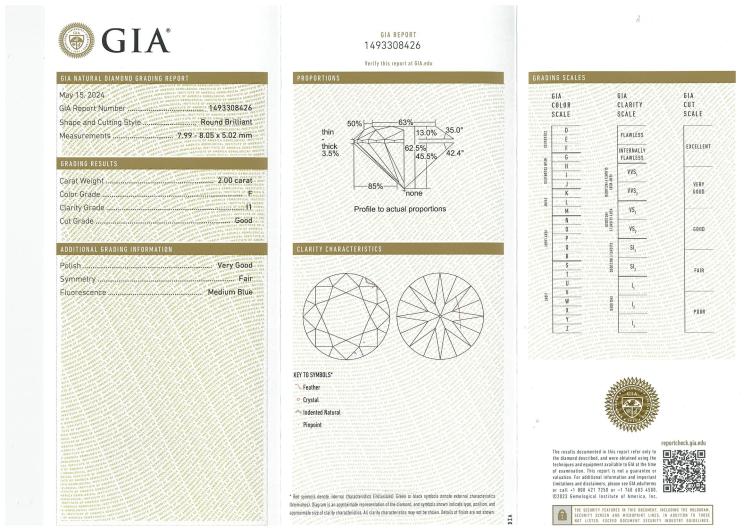 2.00ct Diamond Solitaire Ring GIA F P1