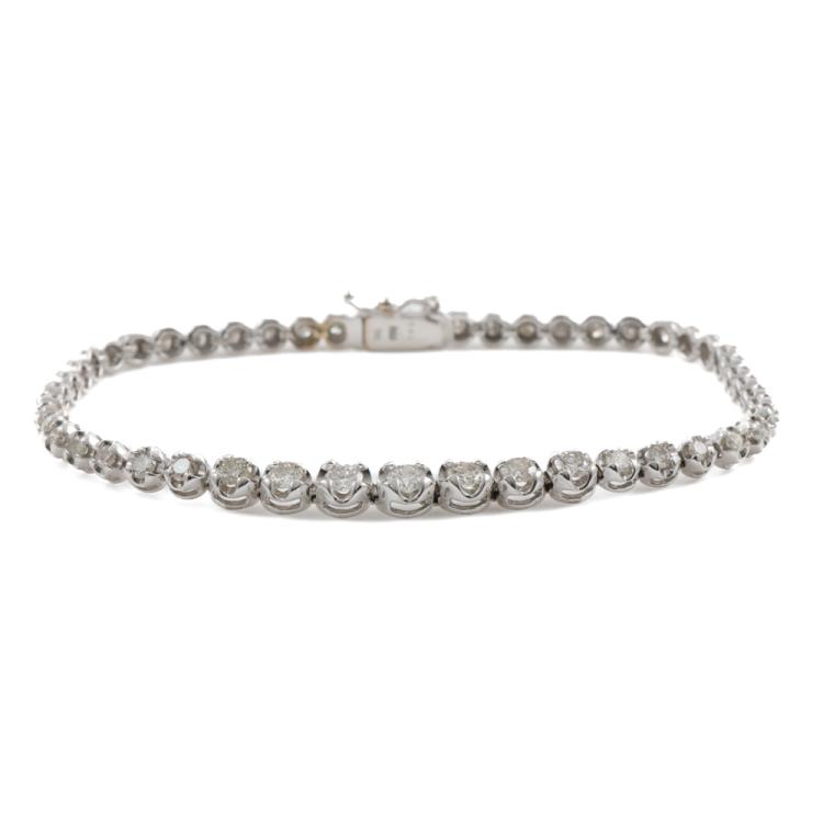 Diamond Tennis bracelet with50 graduated round Natural Diamonds totalling 2.00ct (Estimated Grading: I-J SI-P1). 18ct white gold. Length: 18.5cm. Weight: 10.0g. (Pre-owned)