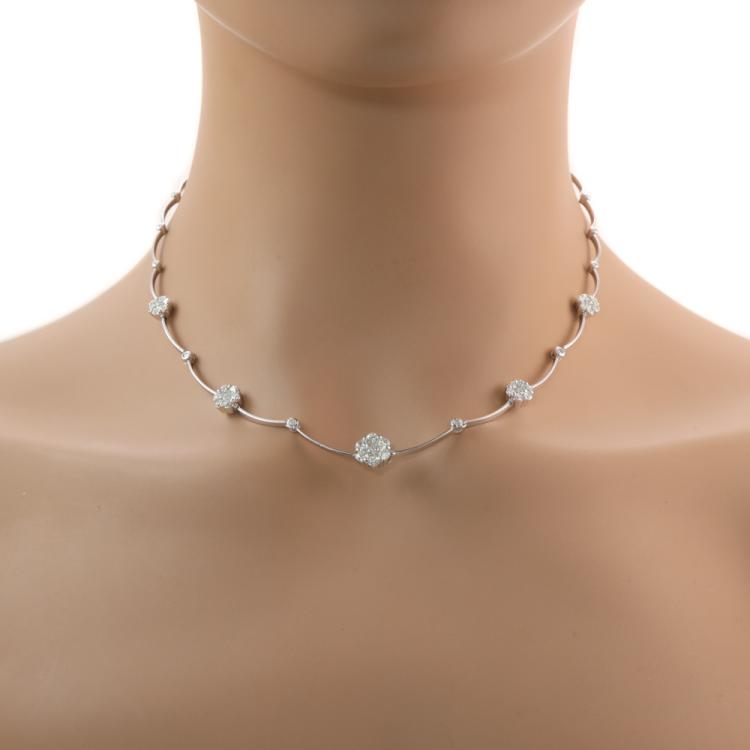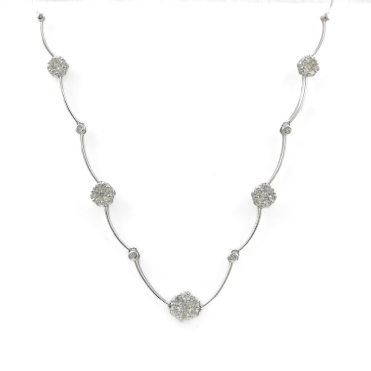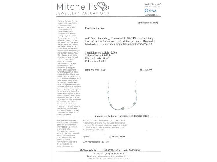 Diamond necklace with round Natural Diamonds totalling 2.00ct (Estimated grading: I-J SI-P1). 18ct white gold. Length: 40.5cm. Weight: 14.7g. With Valuation Certificate: #419294 (Pre-owned)