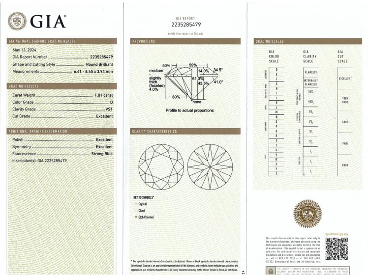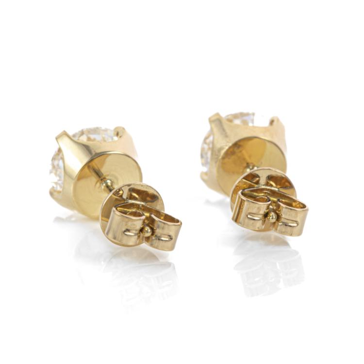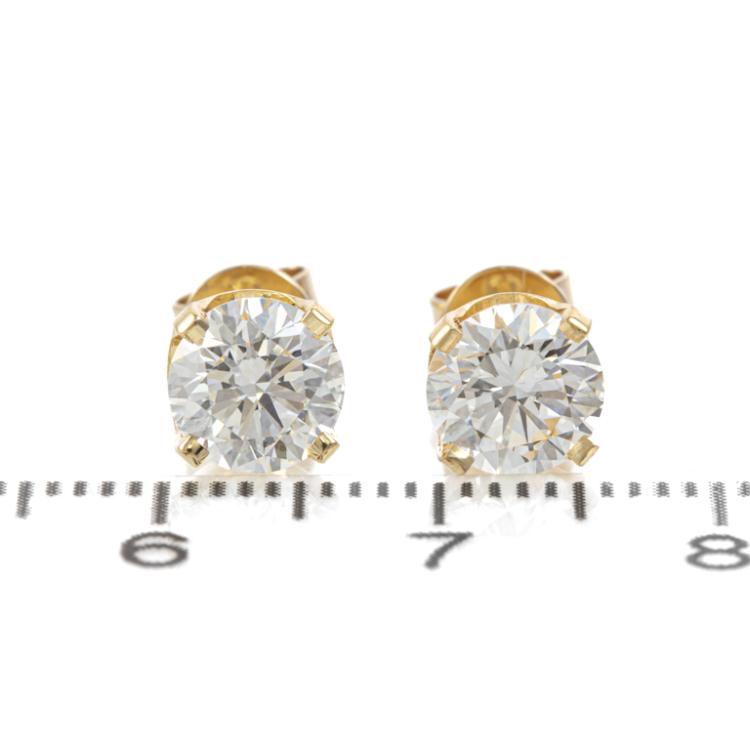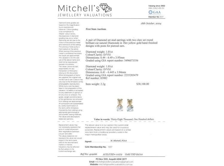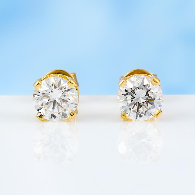 Diamond stud earrings with 2 round brilliant cut Natural Diamonds totalling 2.02ct (both with GIA Reports graded as D VS1 #5496073556, 2235285479). 18ct yellow gold. Weight: 2.2g. With Valuation #419266. (New)