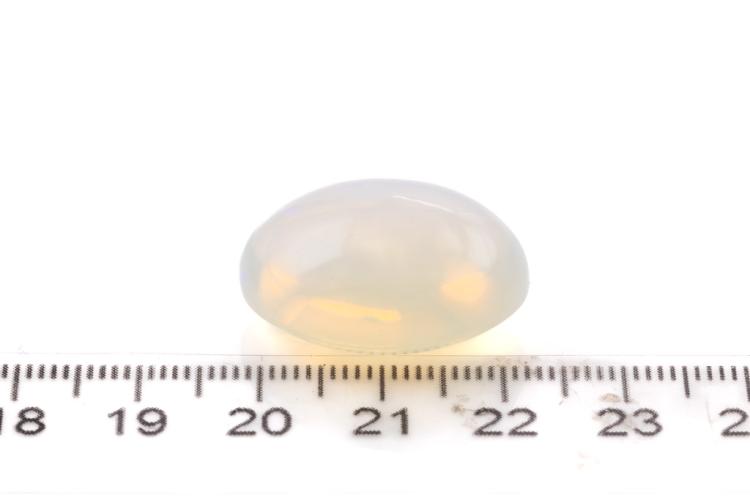 A loose cabochon cut oval solid Crystal Opal of 22.52ct. Dimensions: 24.30mm x 18.80mm x 12.00mm. (As New)