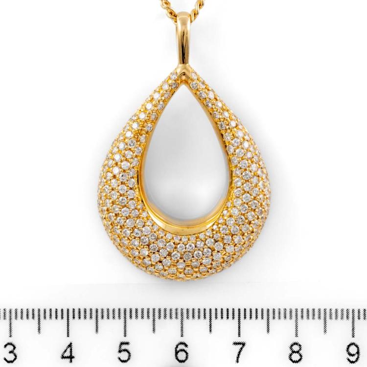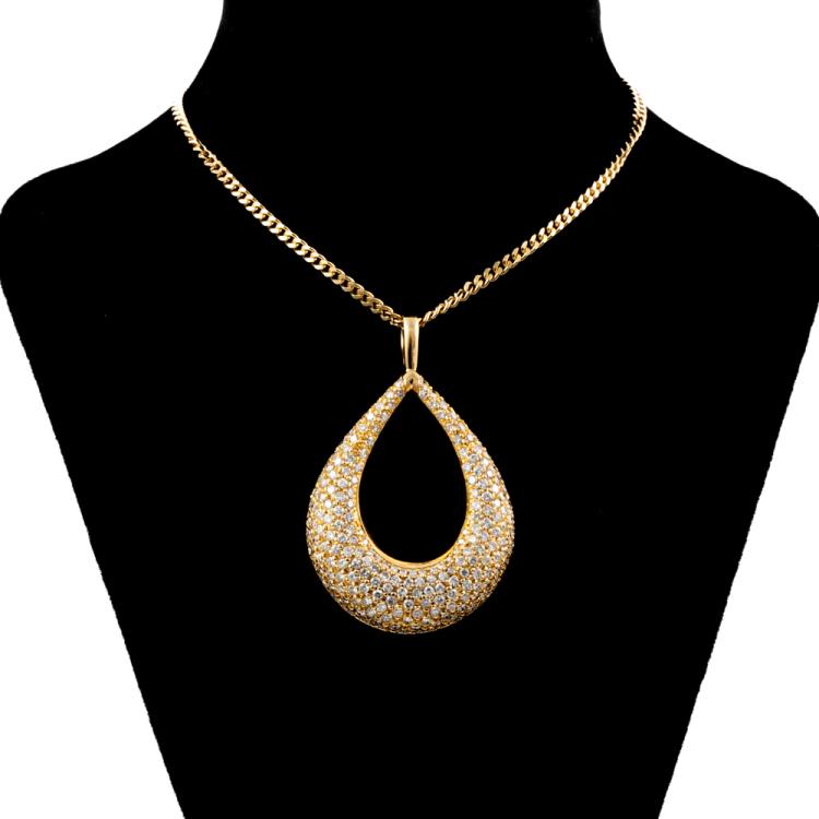 Diamond dress pendant with round natural Diamonds totalling 3.41ct (Estimated grading: I-J SI). 18ct yellow gold with 49cm 18ct yellow gold chain. Weight: 24.4g. With Valuation Certificate #417924. (Pre-owned)