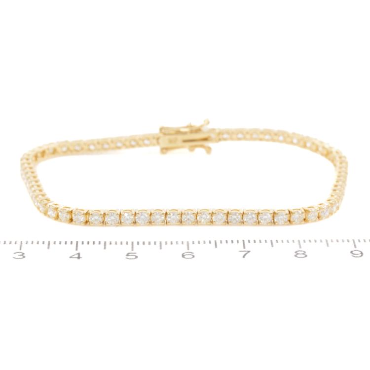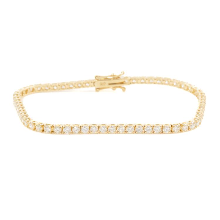 Diamond tennis bracelet with 64 round natural Diamonds totalling 3.72ct (Estimated grading: J-K VS-SI). 18ct yellow gold. Length: 18cm. Weight: 8.9g. With Valuation Certificate #418814. (New)