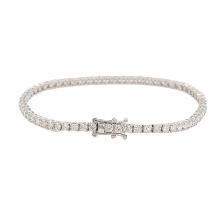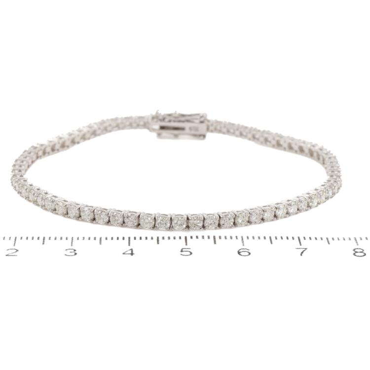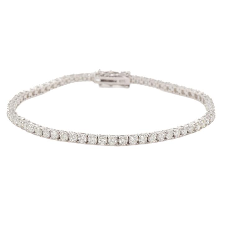 Diamond tennis bracelet with 64 round Natural Diamonds totalling 3.98ct (Estimated grading: H-I SI). 18ct white gold. Length: 18cm. Weight: 8.7g. With Certificate #419663. (New)