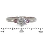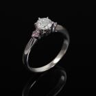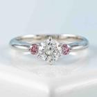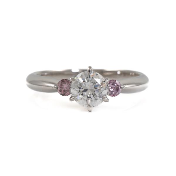 Diamond ring with centre round natural Diamond of 0.49ct (Estimated grading: G VS) and 2 shoulder round natural Argyle Origin natural pink Diamonds totalling 0.109ct (One pink Diamond of 0.06ct with GSL Report graded as Natural Fancy Intense Purplish Pink P1 #AA AA69338/5. Origin: Argyle Deposit, Western Australia). Ring size: M 1/4. Band width: 2mm - 1.6mm. Weight: 3.1g. (Pre-owned)