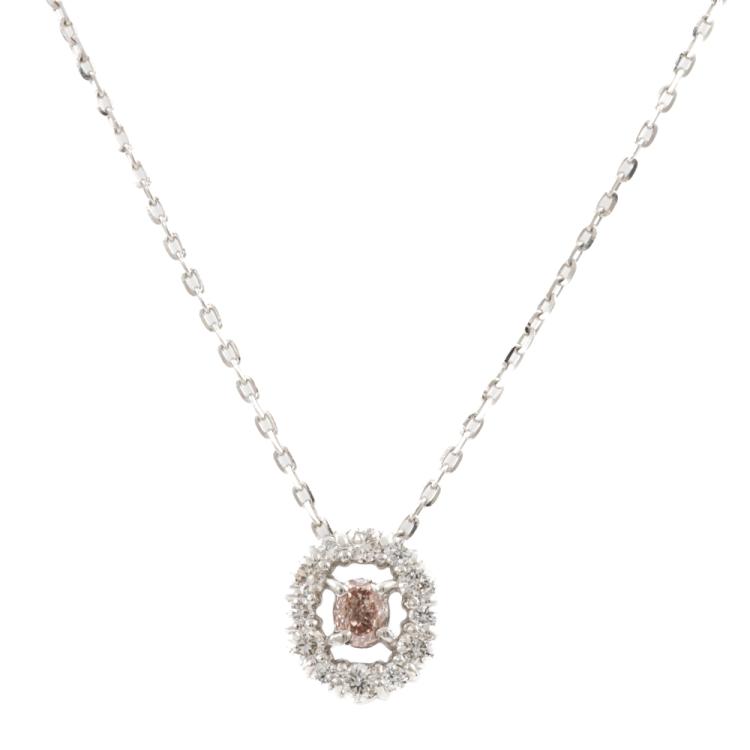 Diamond pendant with centre oval shape natural Argyle Origin Pink Diamond of 0.057ct (With GSL Report graded as Natural Fancy Pink SI1 #AA69151/3, Origin: Argyle deposit, Western Australia) and surrounding round natural Diamonds totalling 0.10ct. Platinum 950 with Platinum 850 adjustable 50.0cm chain. Weight: 1.7g. (Pre-owned)