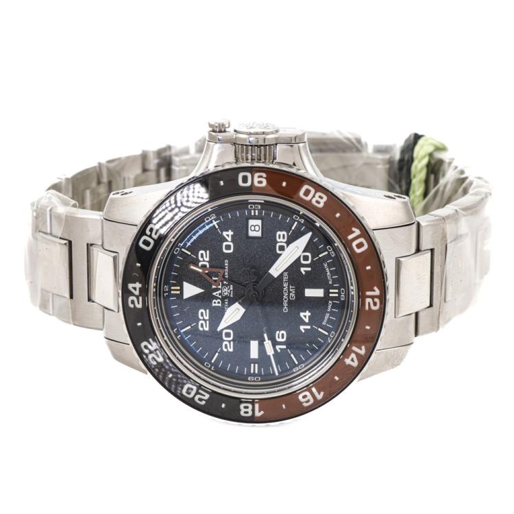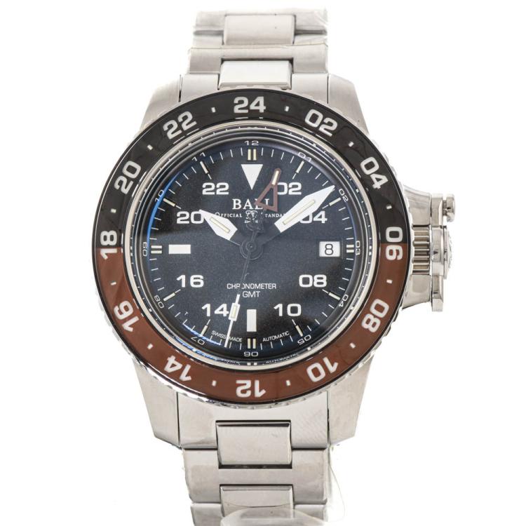 Ball Engineer Hydrocarbon AeroGMT II stainless steel automatic mens watch. Black dial, date, case diameter: 40mm, wrist size: 20cm, Swiss made. Ref# DG2118C-S12C-BK. With Ball stainless steel bracelet and clasp. With Undated Ball Premium International Warranty Certificate card, Ball Chronometer Certificate card and Ball box. 12 month FSA warranty (As new, Note: case and bracelet in original wrap)