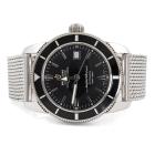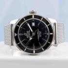Breitling Superocean Heritage stainless steel automatic mens watch. Black dial, date, case diameter: 42mm, wrist size: 17.cm, Swiss made. Ref# A17321. With Breitling stainless steel bracelet and clasp. With Certificate of Authenticity. 3 month FSA warranty (Pre-owned)