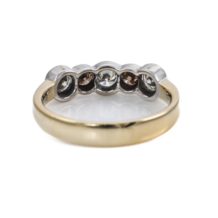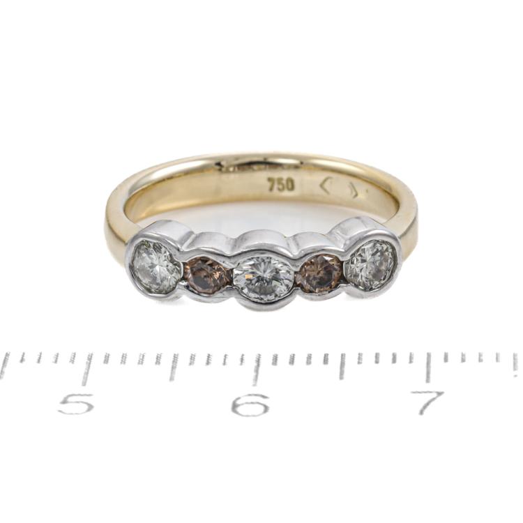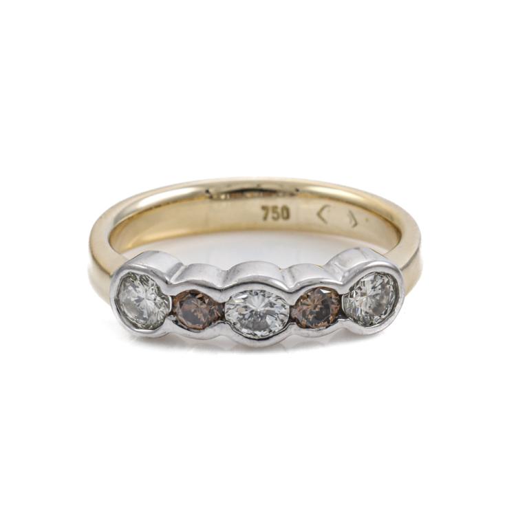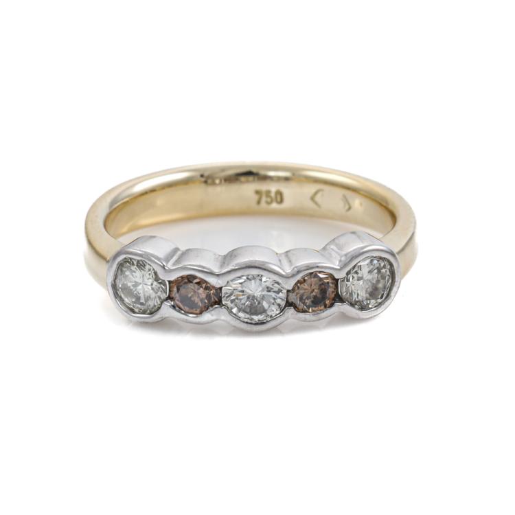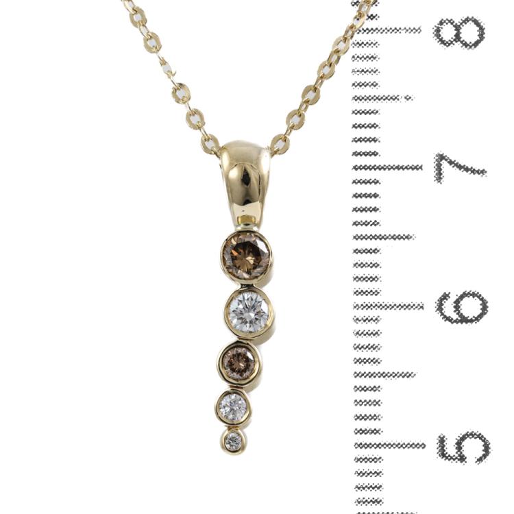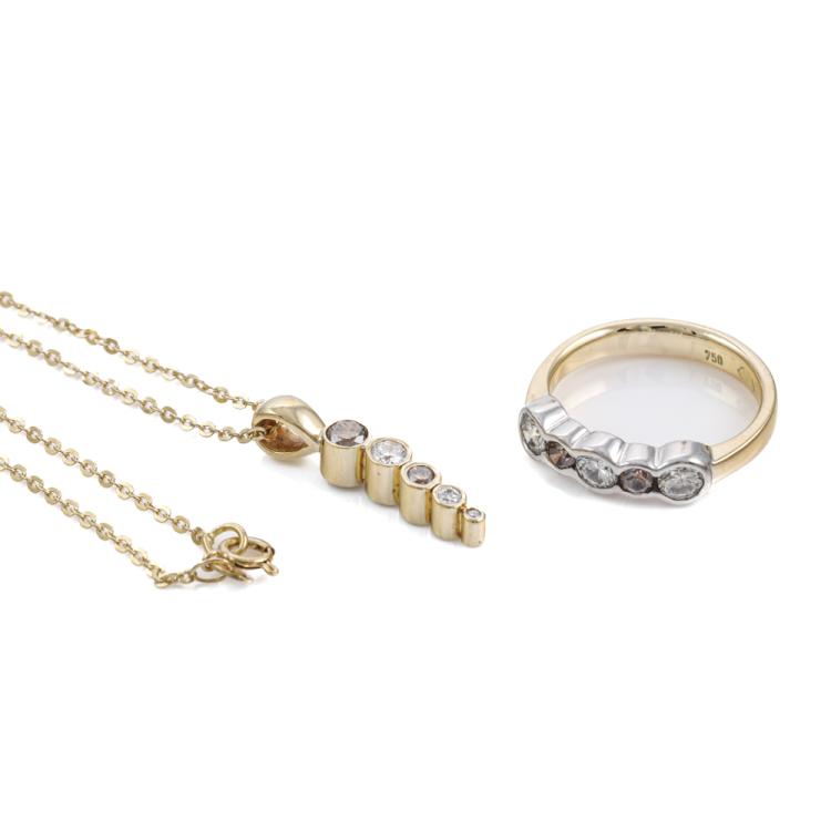 Diamond Ring and Pendant set. 1) Diamond eternity ring with round Natural Diamonds totalling approximately 0.73ct (Estimated grading: I-K & Cognac SI-P1). 18ct yellow & white gold. Ring size: L½. Band width: 3.4mm-2.5mm. 2) Diamond pendant with round Natural Diamonds totalling approximately 0.34ct (Estimated grading: H-I Cognac SI). 18ct yellow gold with 40.5cm 18ct yellow gold chain. Combined weight: 7.7g. (Pre-owned)