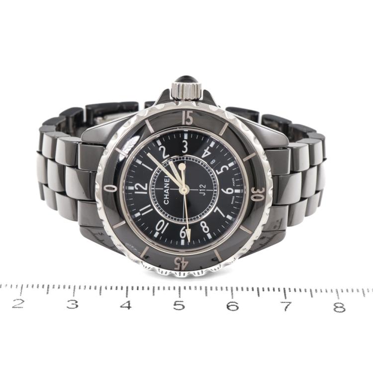 Chanel J12 black ceramic and stainless steel quartz watch. Black dial, date, case diameter: 33mm, wrist size: 15.5cm, Swiss made. Ref# H0682. With Chanel black ceramic bracelet and clasp. With Certificate of Authenticity and Chanel box. 3 month FSA warranty (Pre-owned)
