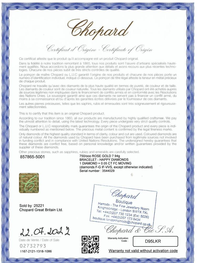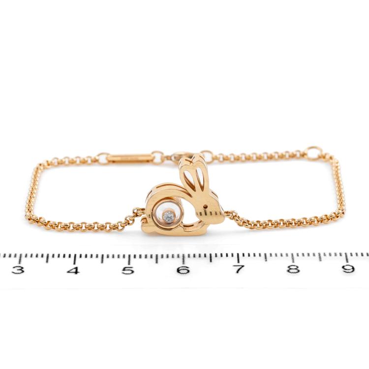 Chopard Happy Diamonds Rabbit bracelet with 1 floating round natural Diamond of approximately 0.05ct. 18ct rose gold. Maximum length: 18.5cm. Weight: 8.5g. With Chopard Certificate of Origin dated 22/07/22. (Pre-owned)