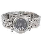 Chopard Happy Sport stainless steel quartz ladies watch. Black dial with 5 floating Diamonds, case diameter: 26mm, wrist size: 16.5cm, Swiss made. Ref# 27/8250-23. With Chopard stainless steel bracelet and clasp. With Certificate of Authenticity and Chopard box. 3 month FSA warranty. (Pre-owned)