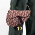 Christian Dior Oblique Saddle bag in burgundy Dior Monogram canvas. Featuring leather trims and single handle, an exterior pocket at back, gold-toned hardware, CD signature on the strap, flap with magnetic closure on front. This opens to beige fabric lining interior with a zipped pocket. Approximate dimensions: 26cm(L) x 20cm(H) x 6.5cm(D), 16.5cm handle drop. Accompanied by a Dior certificate card dated14/03/19. With Entrupy Certificate of Authenticity. (Pre-owned)